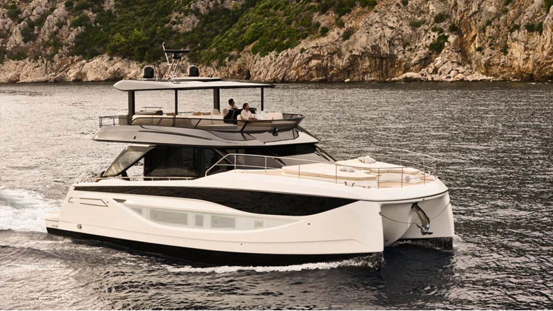 The Prestige M7 invites you to experience the “Art de Vivre” of prestige yachting. In other words, it’s designed for seamless comfort and effortless style on the water. Whether you’re cruising or at anchor, this power multihull delivers an elevated onboard lifestyle that’s rare in its category.